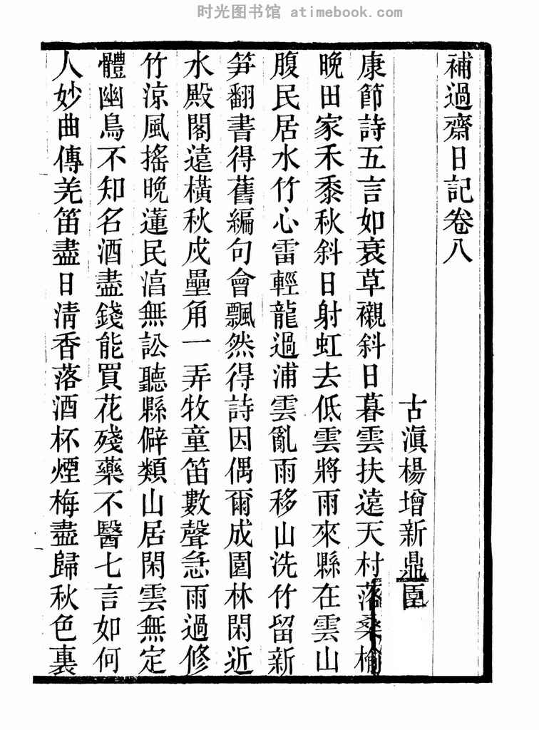 | 网盘路径:/时光图书馆珍藏系列/书籍文件/老图书/《补过斋日记_卷8》电子版合集.db | ||