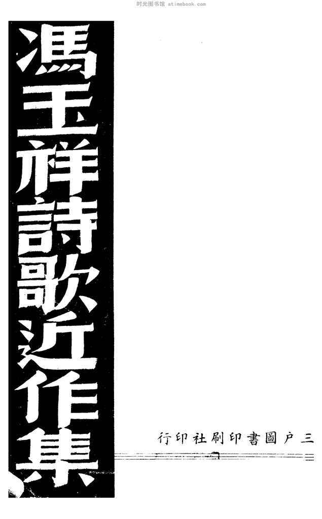 | 网盘路径:/时光图书馆珍藏系列/书籍文件/老图书/《冯玉祥诗歌近作集》电子版合集.db | ||
