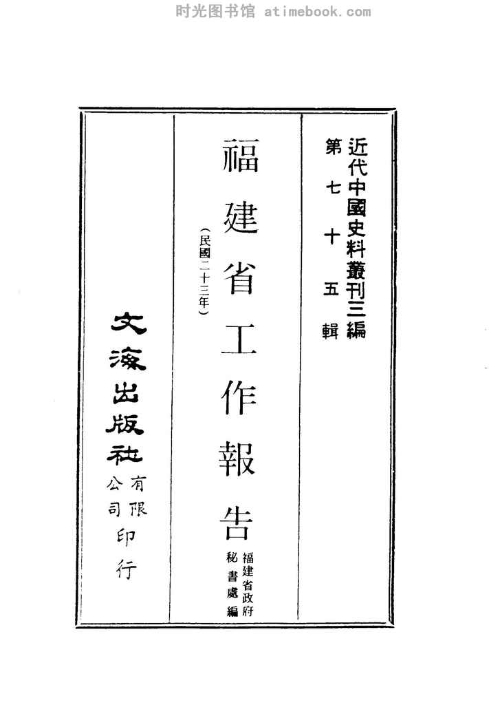 | 网盘路径:/时光图书馆珍藏系列/书籍文件/老图书/《福建省工作报告(民国二十三年)》电子版合集.db | ||