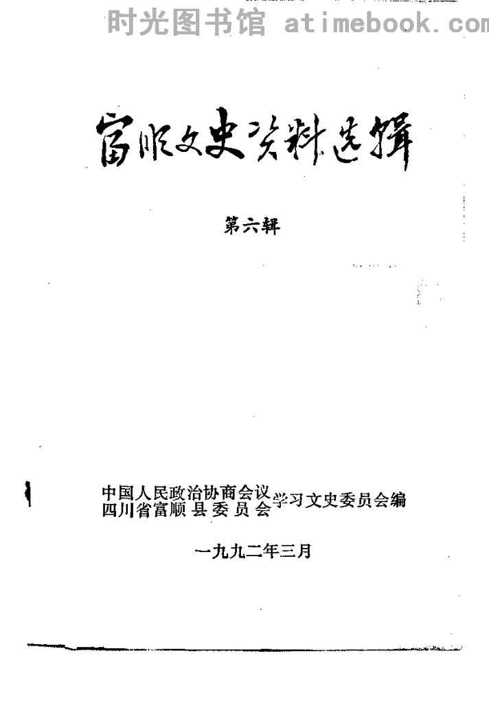 | 网盘路径:/时光图书馆珍藏系列/书籍文件/老图书/《富顺县文史资料选辑_第6辑》电子版合集.db | ||