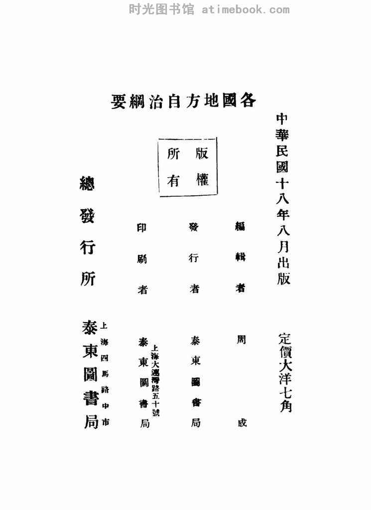 网盘路径:/时光图书馆珍藏系列/书籍文件/老图书/《各国地方自治纲要讲义》电子版合集.db