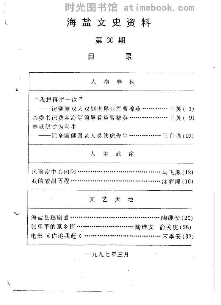 网盘路径:/时光图书馆珍藏系列/书籍文件/老图书/《海盐文史资料_第30辑》电子版合集.db