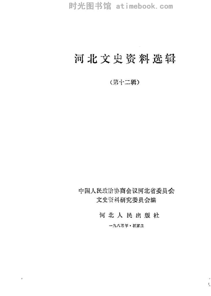 网盘路径:/时光图书馆珍藏系列/书籍文件/老图书/《河北文史资料选辑_第12辑》电子版合集.db