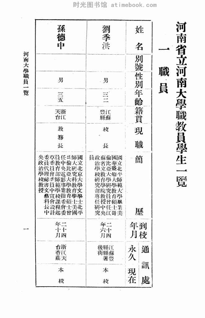 网盘路径:/时光图书馆珍藏系列/书籍文件/老图书/《河南省立河南大学职教员学生一览》电子版合集.db