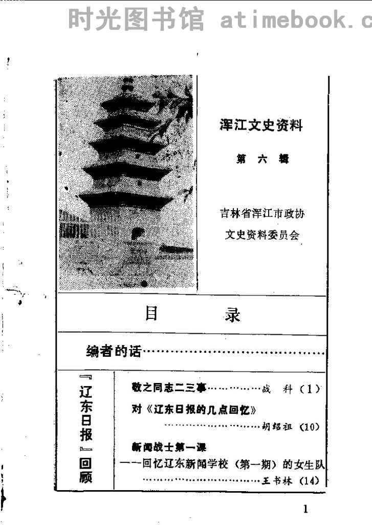 | 网盘路径:/时光图书馆珍藏系列/书籍文件/老图书/《浑江文史资料_第6辑》电子版合集.db | ||