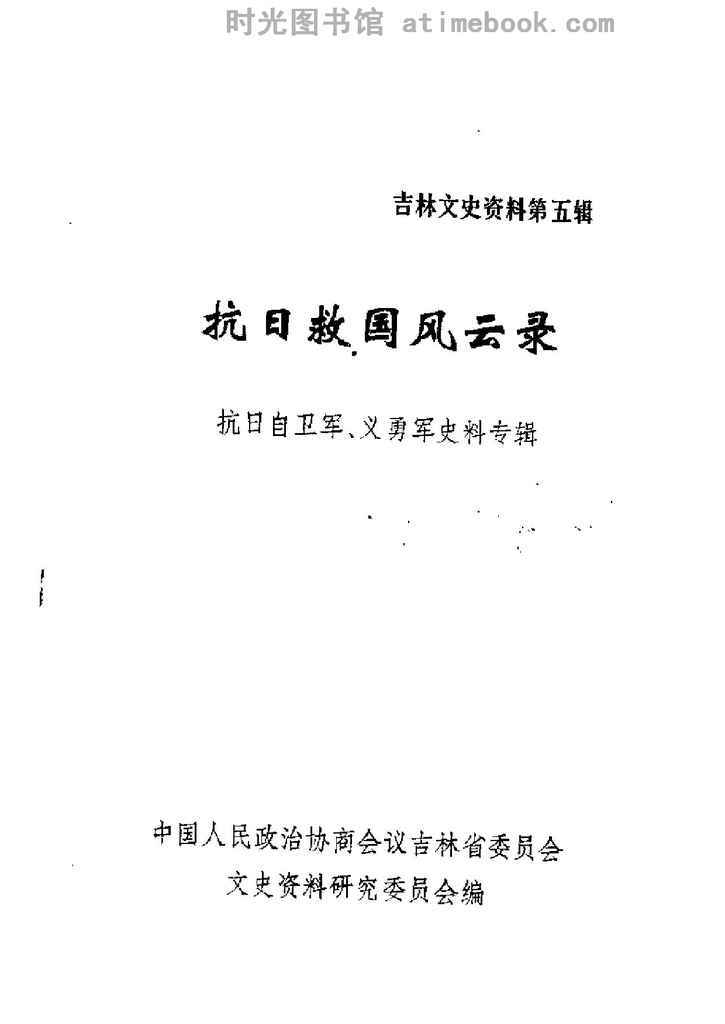 | 网盘路径:/时光图书馆珍藏系列/书籍文件/老图书/《吉林文史资料_第5辑_抗日求国风云录》电子版合集.db | ||