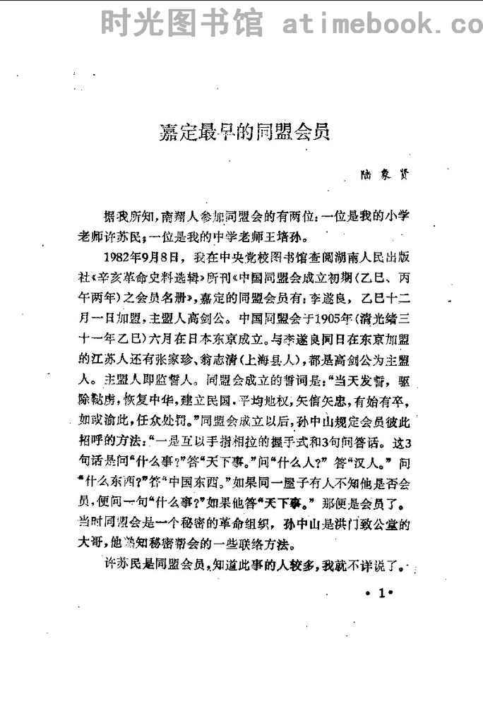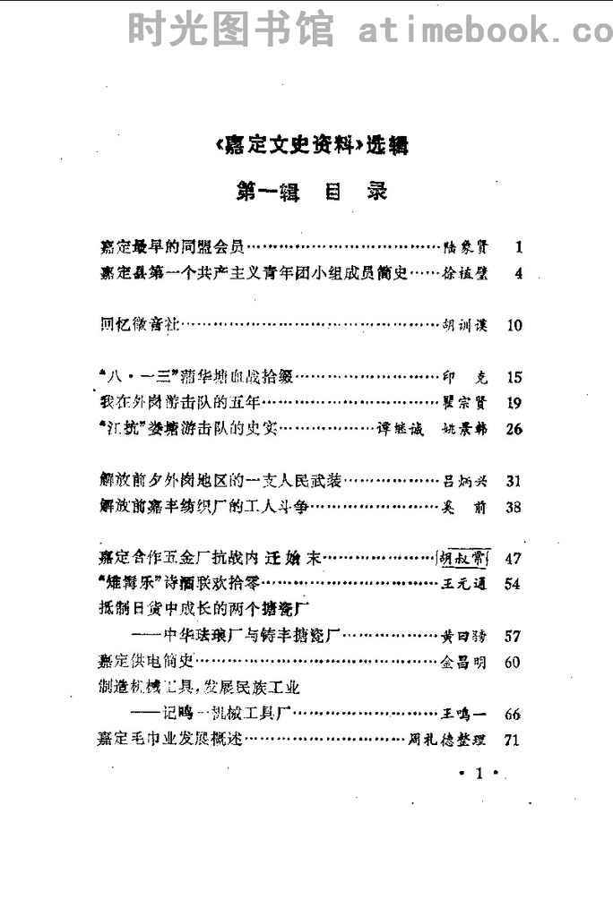 | 网盘路径:/时光图书馆珍藏系列/书籍文件/老图书/《嘉定文史资料选辑_第1辑》电子版合集.db | ||