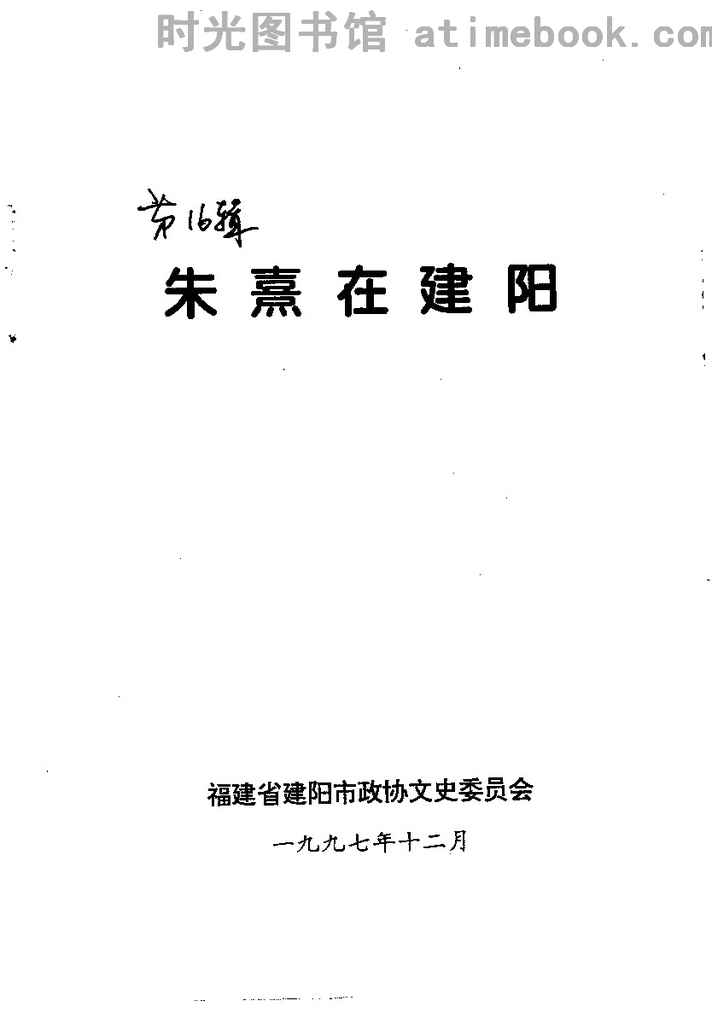 | 网盘路径:/时光图书馆珍藏系列/书籍文件/老图书/《建阳文史资料_第16辑(朱熹在建阳)》电子版合集.db | ||