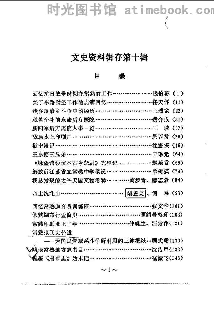 | 网盘路径:/时光图书馆珍藏系列/书籍文件/老图书/《江苏省常熟市文史资料辑存_第10辑》电子版合集.db | ||