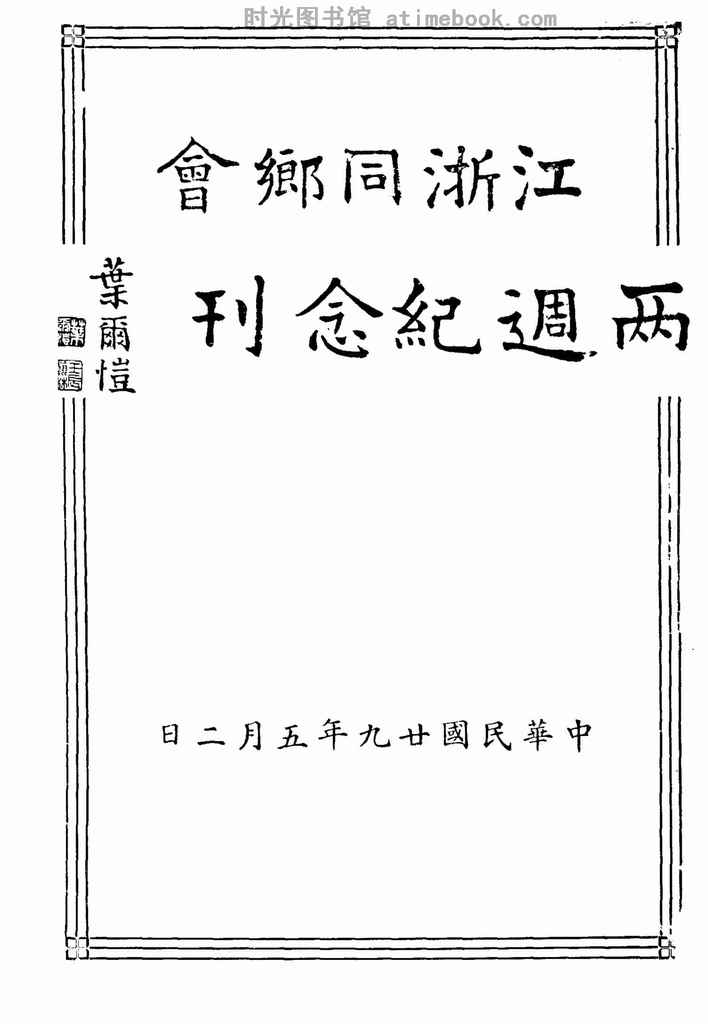 | 网盘路径:/时光图书馆珍藏系列/书籍文件/老图书/《江浙同乡会两周纪念刊》电子版合集.db | ||