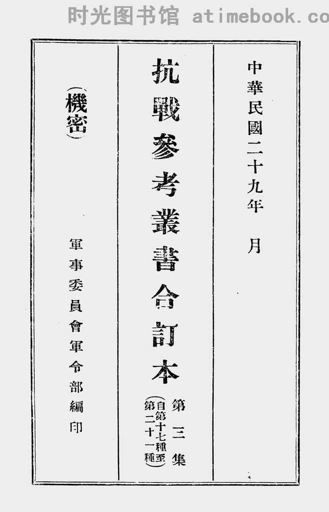 | 网盘路径:/时光图书馆珍藏系列/书籍文件/老图书/《抗战参考丛书合订本_第3集(自第十七种至第二十一种)》电子版合集.db | ||