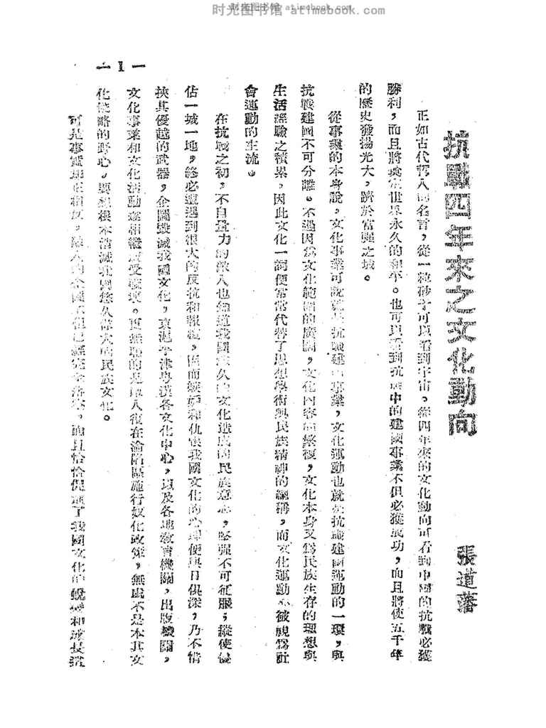 | 网盘路径:/时光图书馆珍藏系列/书籍文件/老图书/《抗战四年来的文化运动_上》电子版合集.db | ||