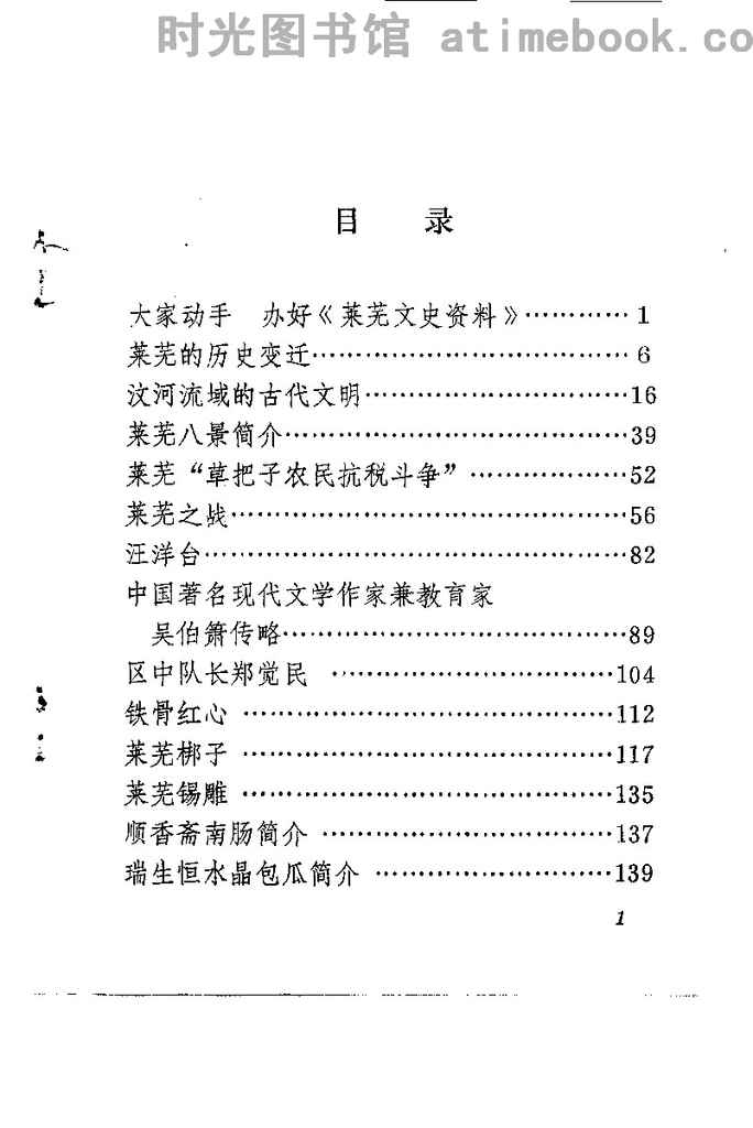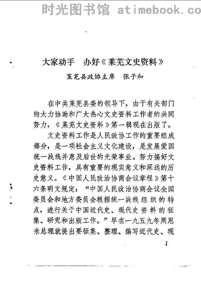| 网盘路径:/时光图书馆珍藏系列/书籍文件/老图书/《莱芜文史资料_第1辑》电子版合集.db | ||