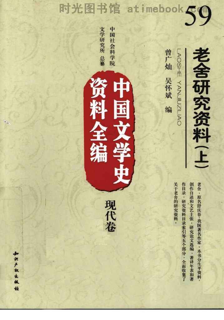 | 网盘路径:/时光图书馆珍藏系列/书籍文件/老图书/《老舍研究资料(上)》电子版合集.db | ||