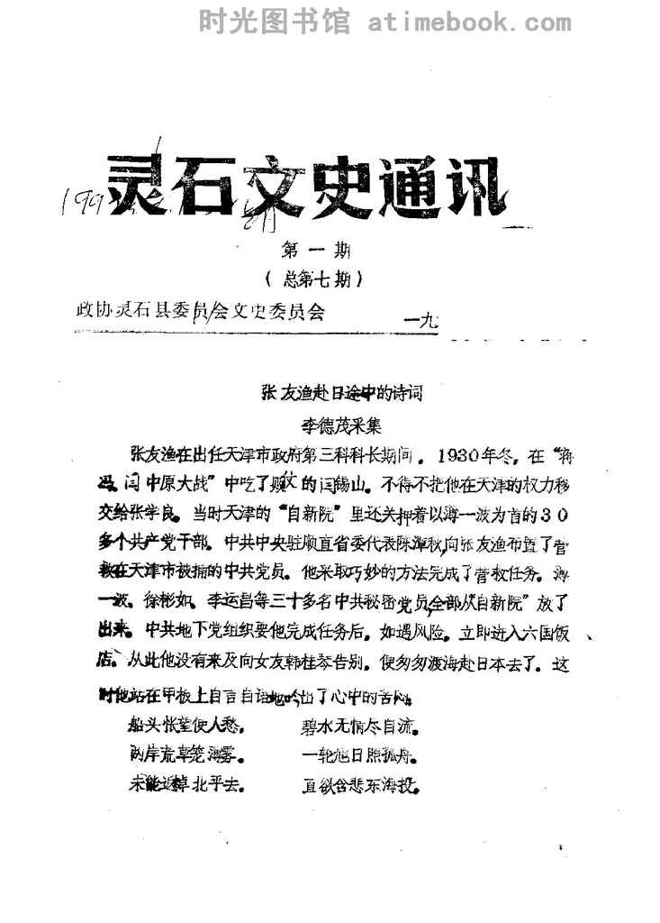 网盘路径:/时光图书馆珍藏系列/书籍文件/老图书/《灵石文史通讯_1992年第1-8辑_总第7-14辑》电子版合集.db