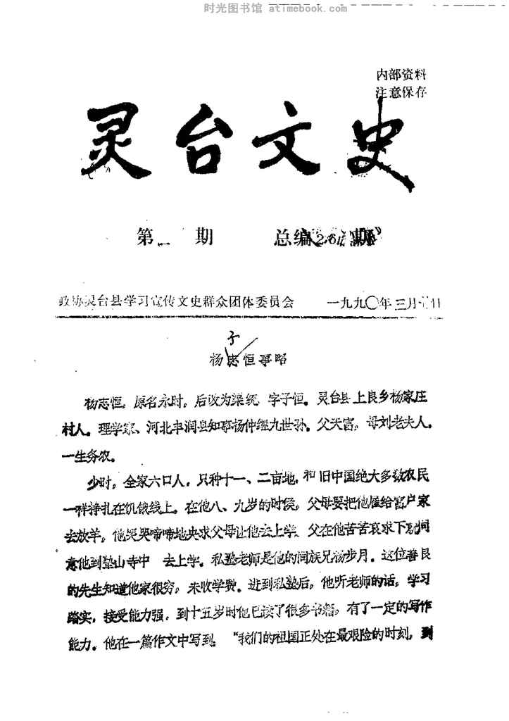 | 网盘路径:/时光图书馆珍藏系列/书籍文件/老图书/《灵台文史_1990年第1-8期_总第26-33期》电子版合集.db | ||