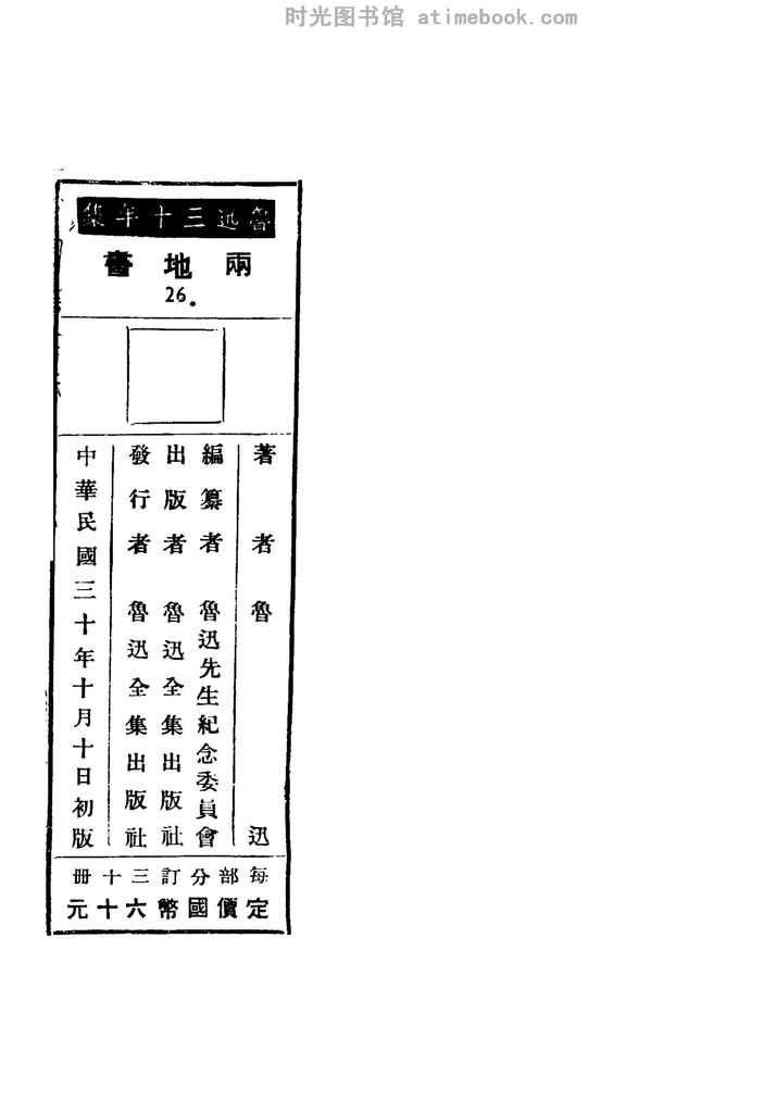 | 网盘路径:/时光图书馆珍藏系列/书籍文件/老图书/《鲁迅三十年集:两地书》电子版合集.db | ||