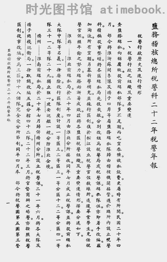 老图书–《民国二十二年盐务稽核总所税警年报》电子版合集