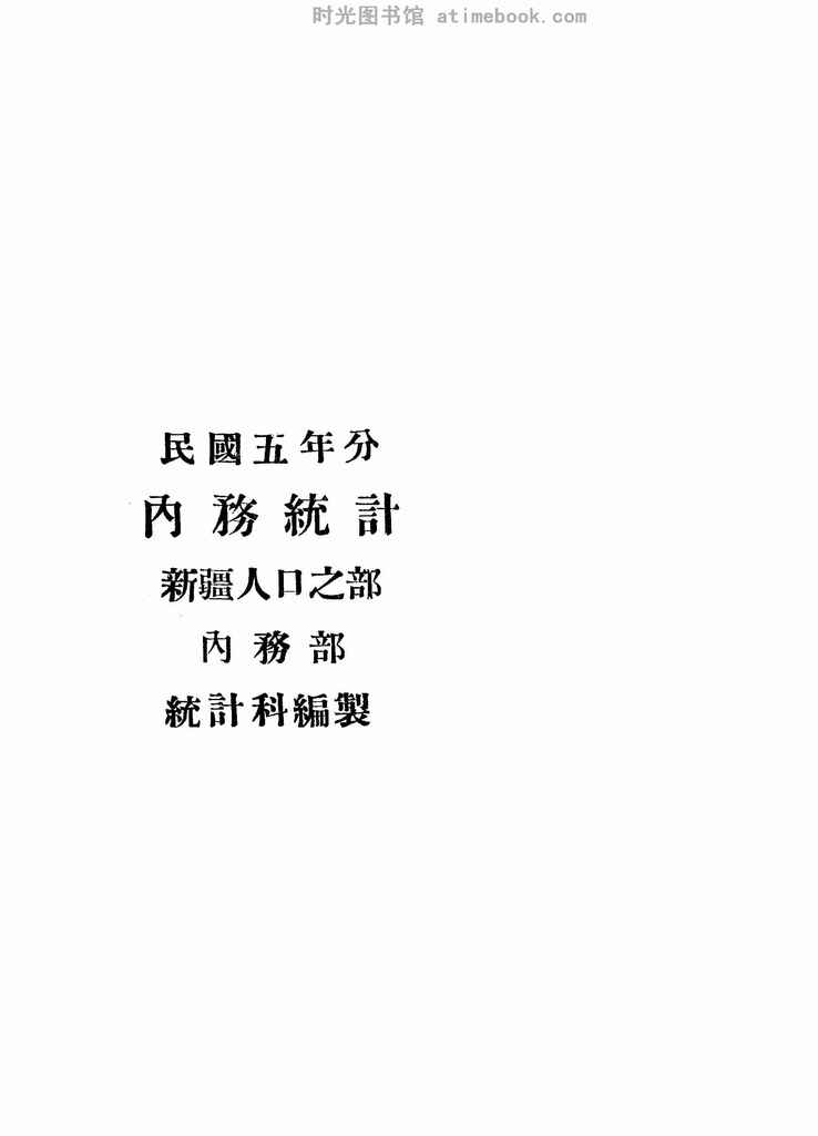 网盘路径:/时光图书馆珍藏系列/书籍文件/老图书/《民国五年分内务统计_·新疆人口之部》电子版合集.db