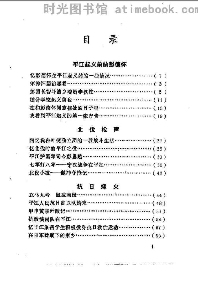 | 网盘路径:/时光图书馆珍藏系列/书籍文件/老图书/《平江文史资料_第1辑》电子版合集.db | ||
