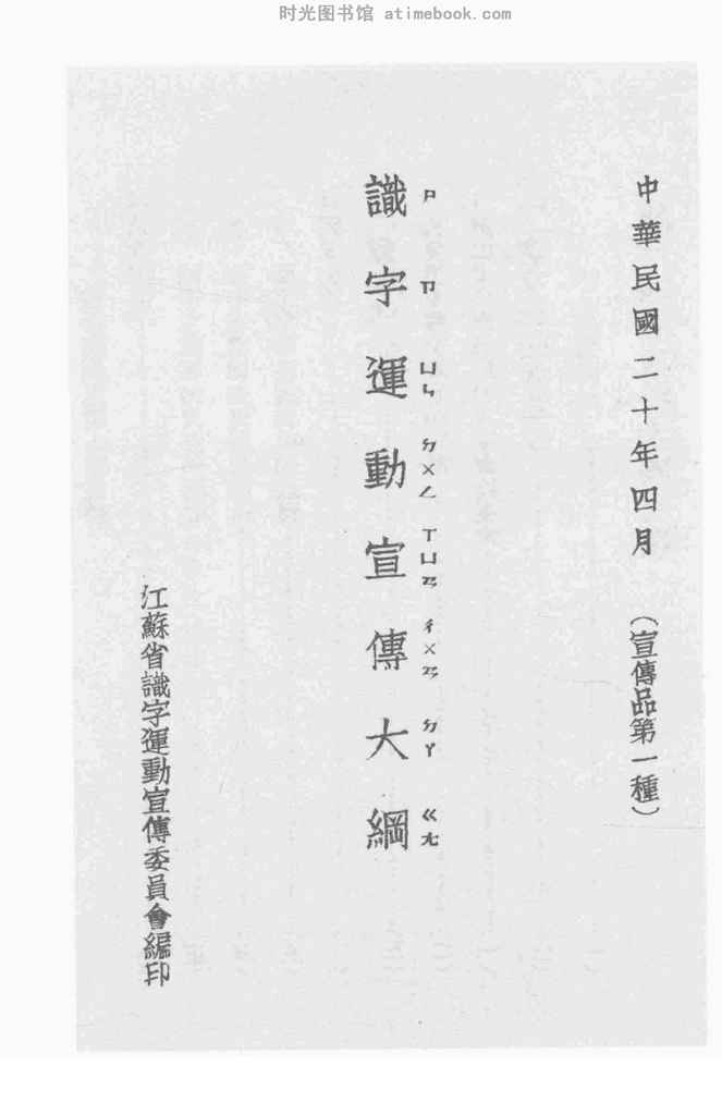 | 网盘路径:/时光图书馆珍藏系列/书籍文件/老图书/《识字运动宣传大纲》电子版合集.db | ||