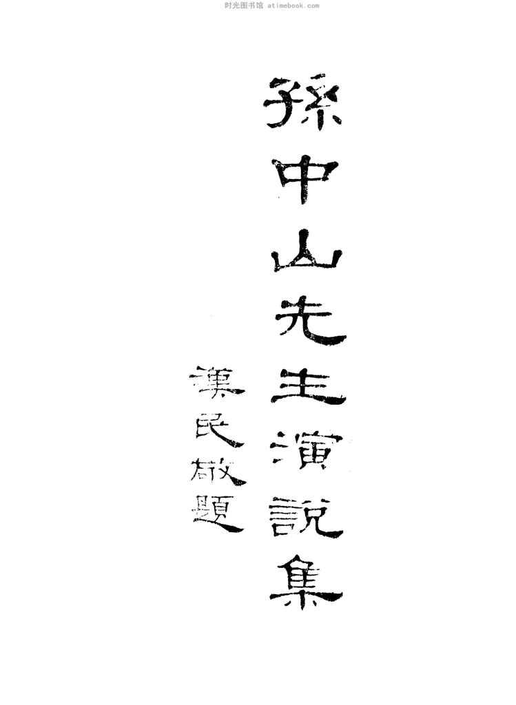 | 网盘路径:/时光图书馆珍藏系列/书籍文件/老图书/《孙中山先生演说集》电子版合集.db | ||