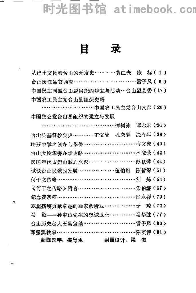 | 网盘路径:/时光图书馆珍藏系列/书籍文件/老图书/《台山文史_第2辑》电子版合集.db | ||