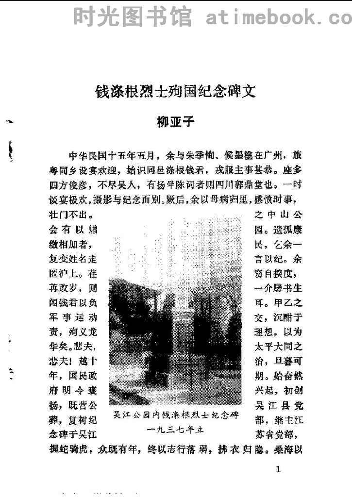 2-一、钱涤根烈士殉国纪念碑文——柳亚子