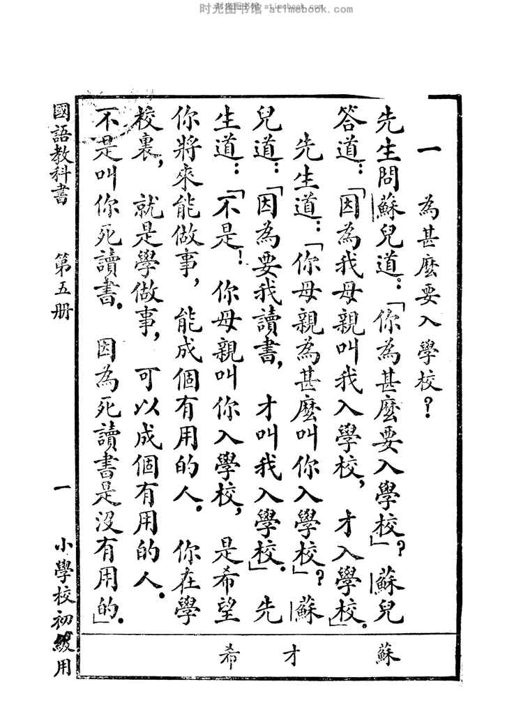| 网盘路径:/时光图书馆珍藏系列/书籍文件/老图书/《小学校初级用新时代国语教科书_第5册》电子版合集.db | ||