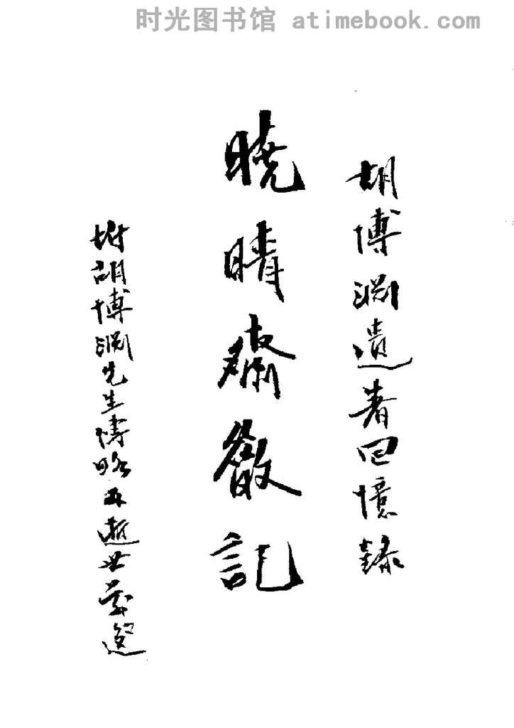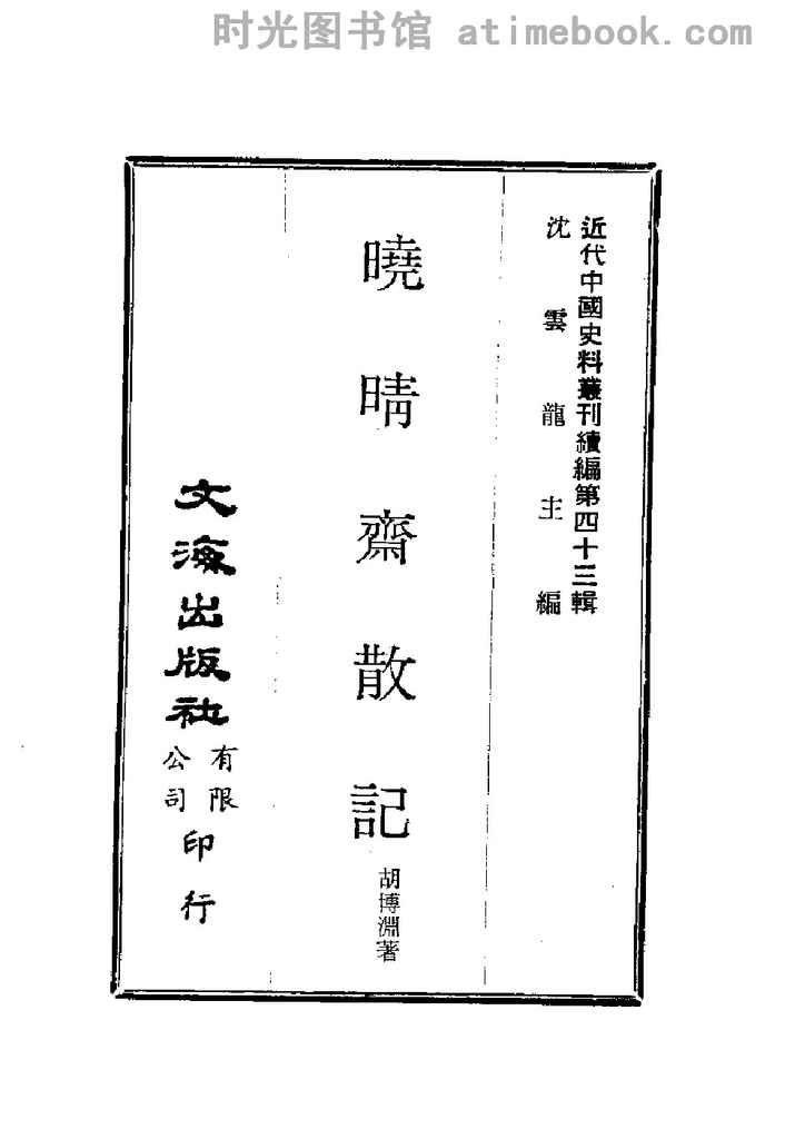 | 网盘路径:/时光图书馆珍藏系列/书籍文件/老图书/《晓晴斋散记》电子版合集.db | ||