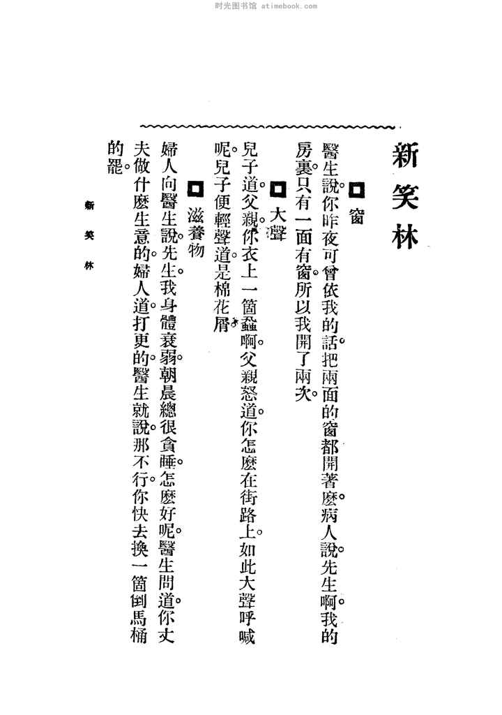 | 网盘路径:/时光图书馆珍藏系列/书籍文件/老图书/《新笑林》电子版合集.db | ||