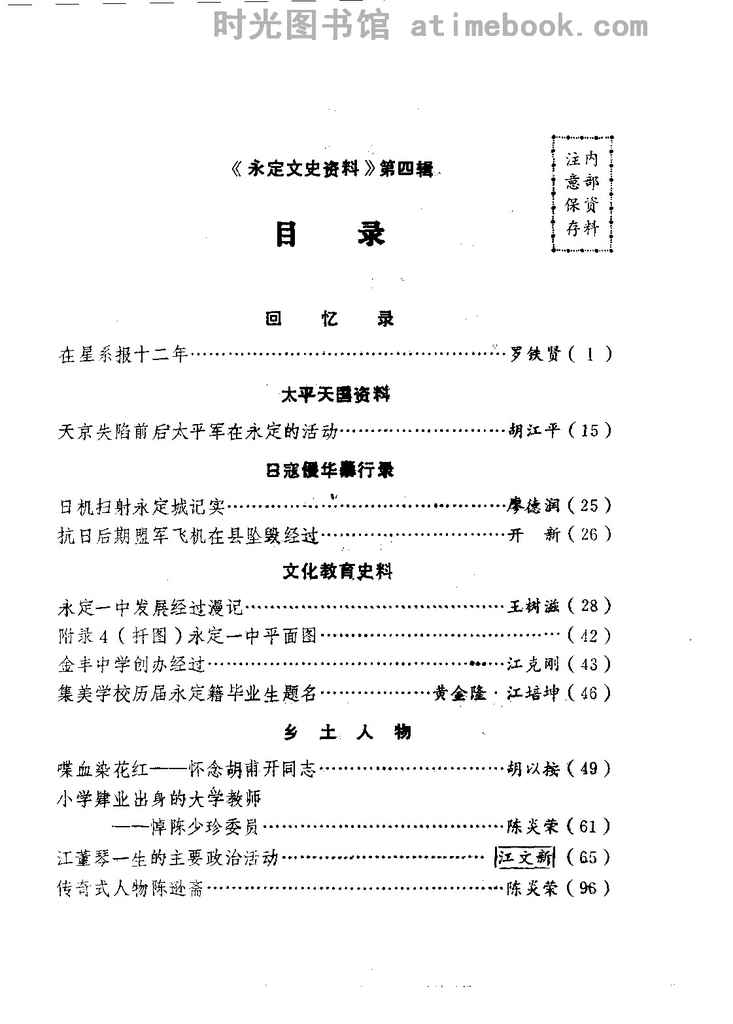 网盘路径:/时光图书馆珍藏系列/书籍文件/老图书/《永定文史资料_第4辑》电子版合集.db