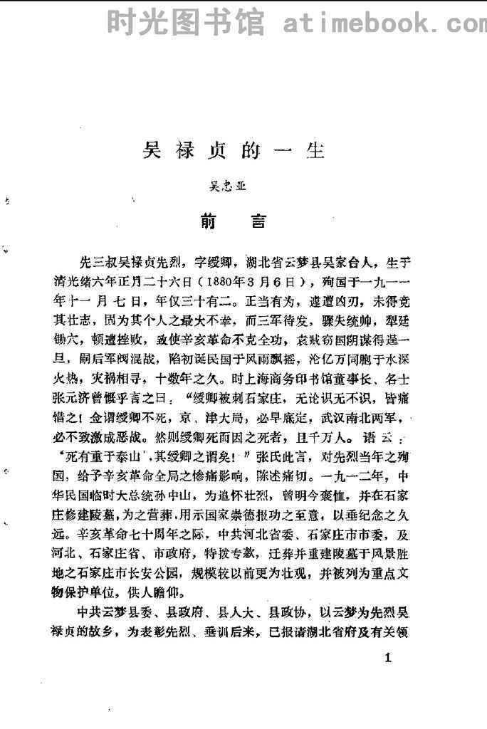 网盘路径:/时光图书馆珍藏系列/书籍文件/老图书/《云梦文史资料_第1辑_纪念吴禄贞诞生105周年专辑》电子版合集.db