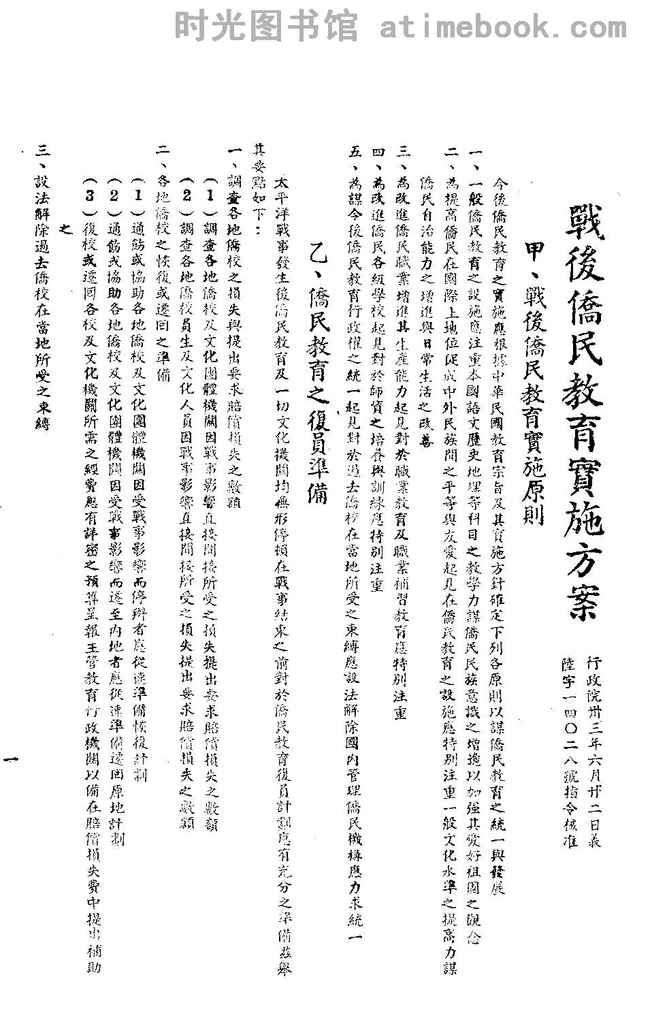 | 网盘路径:/时光图书馆珍藏系列/书籍文件/老图书/《战后侨民教育实施方案》电子版合集.db | ||