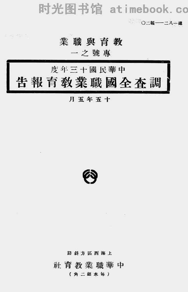 | 网盘路径:/时光图书馆珍藏系列/书籍文件/老图书/《中华民国十三年度调查全国职业教育报告:教育与职业专号之一》电子版合集.db | ||