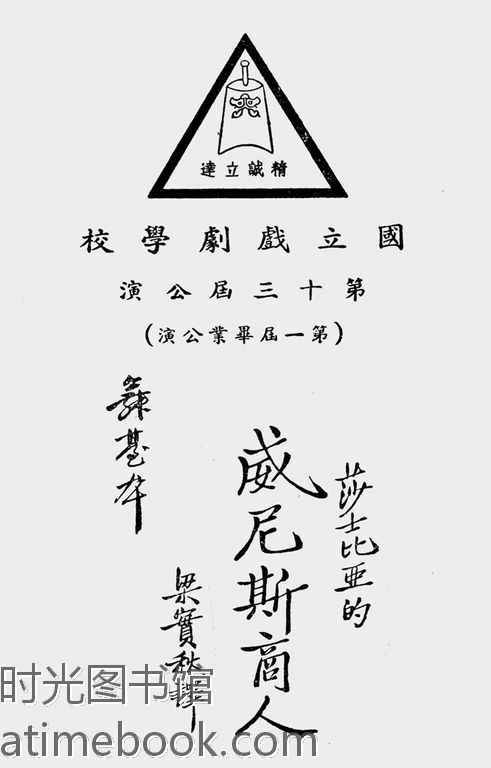 | 网盘路径:/时光图书馆珍藏系列/书籍文件/老图书/《国立戏剧学校第十三届公演(第一届毕业公演莎士比亚的_威尼斯商人)》电子版合集.db | ||