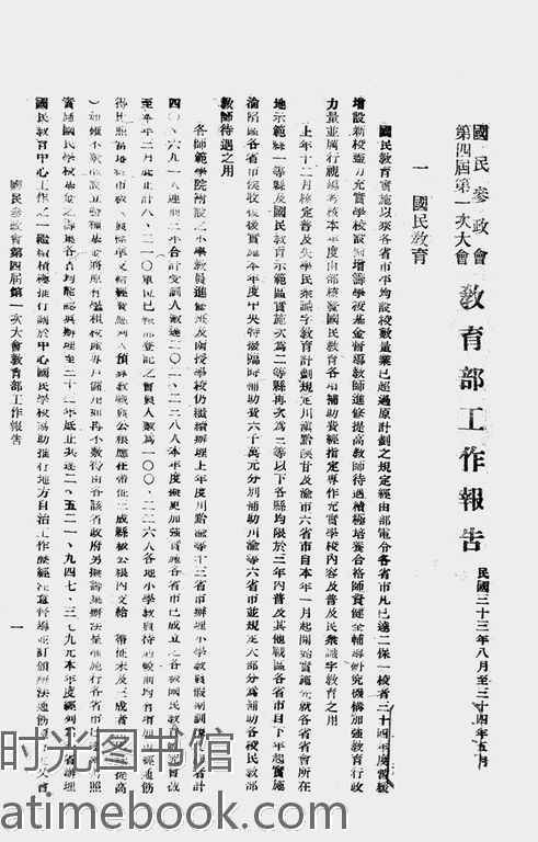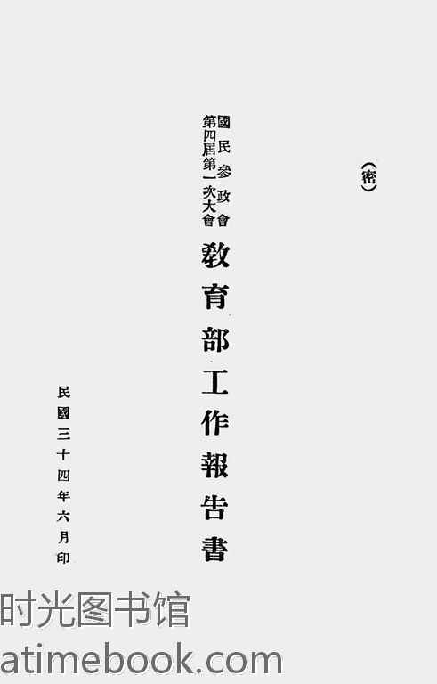| 网盘路径:/时光图书馆珍藏系列/书籍文件/老图书/《国民参政会第四届第一次大会教育部工作报告书》电子版合集.db | ||