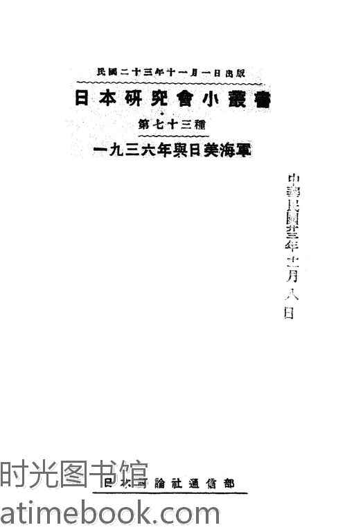 | 网盘路径:/时光图书馆珍藏系列/书籍文件/老图书/《日本研究会小丛书_第73种_一九三六年与日美海军》电子版合集.db | ||