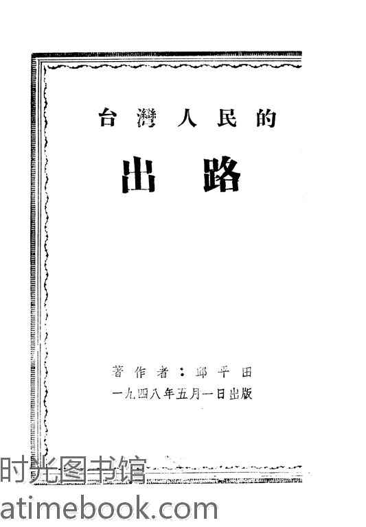 | 网盘路径:/时光图书馆珍藏系列/书籍文件/老图书/《台湾人民的出路》电子版合集.db | ||