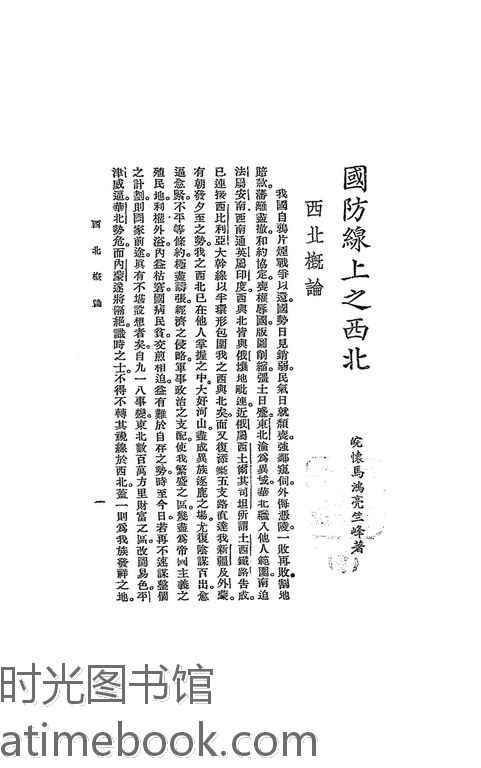 | 网盘路径:/时光图书馆珍藏系列/书籍文件/老图书/《西北国防问题》电子版合集.db | ||