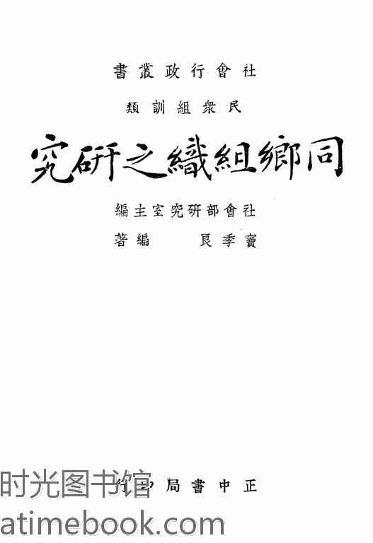 | 网盘路径:/时光图书馆珍藏系列/书籍文件/老图书/《同乡组织之研究》电子版合集.db | ||