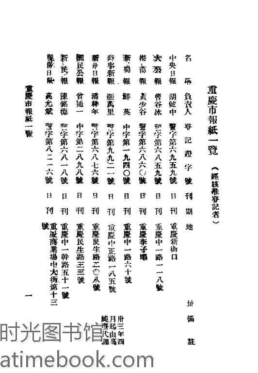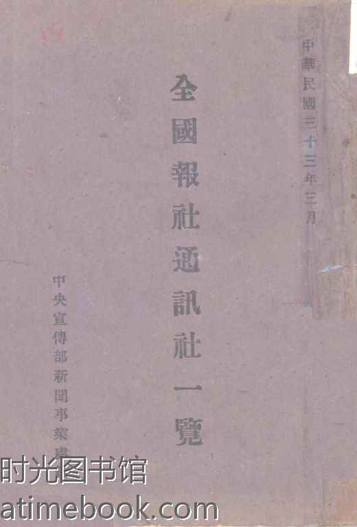 | 网盘路径:/时光图书馆珍藏系列/书籍文件/老图书/《全国报社通讯社一览》电子版合集.db | ||