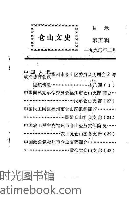 | 网盘路径:/时光图书馆珍藏系列/书籍文件/老图书/《仓山文史_第5辑》电子版合集.db | ||