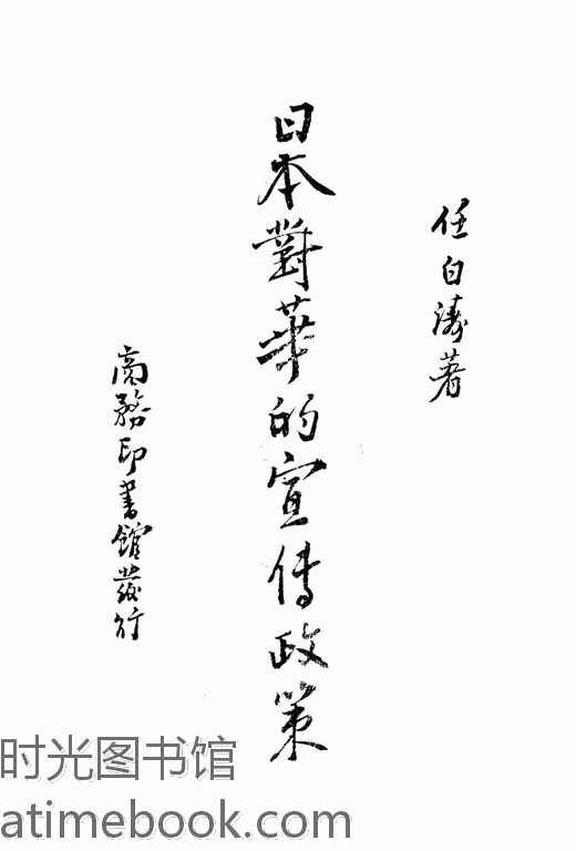 网盘路径:/时光图书馆珍藏系列/书籍文件/老图书/《日本对华的宣传政策》电子版合集.db