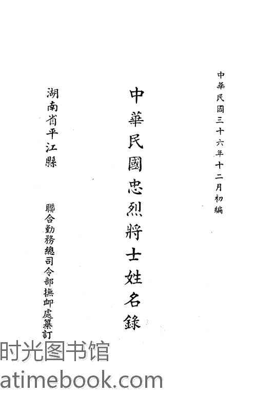 | 网盘路径:/时光图书馆珍藏系列/书籍文件/老图书/《中华民国忠烈将士姓名录》电子版合集.db | ||