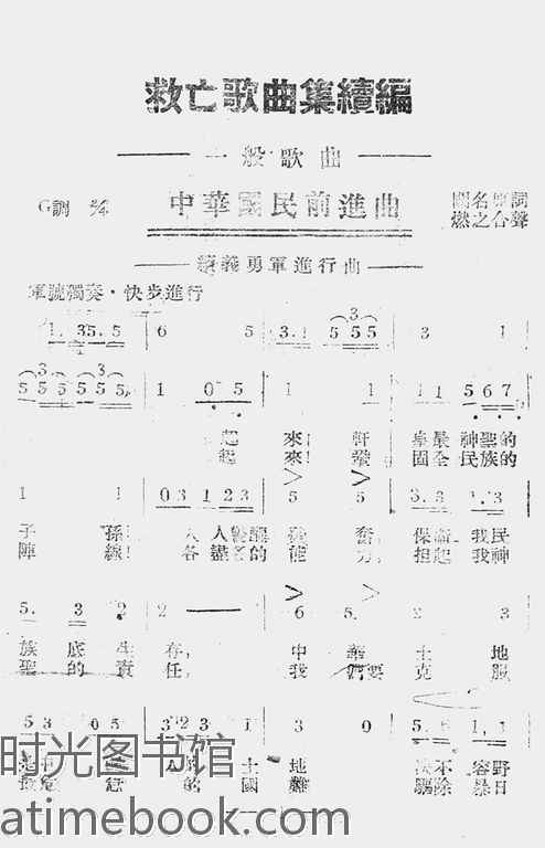 | 网盘路径:/时光图书馆珍藏系列/书籍文件/老图书/《救亡歌曲集续编》电子版合集.db | ||