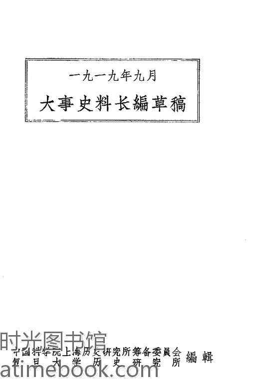 | 网盘路径:/时光图书馆珍藏系列/书籍文件/老图书/《大事史料长编草稿(一九一九年九月)》电子版合集.db | ||