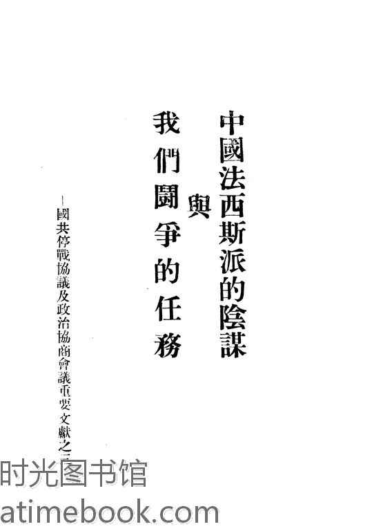 | 网盘路径:/时光图书馆珍藏系列/书籍文件/老图书/《中国法西斯派的阴谋与我们斗争的任务》电子版合集.db | ||