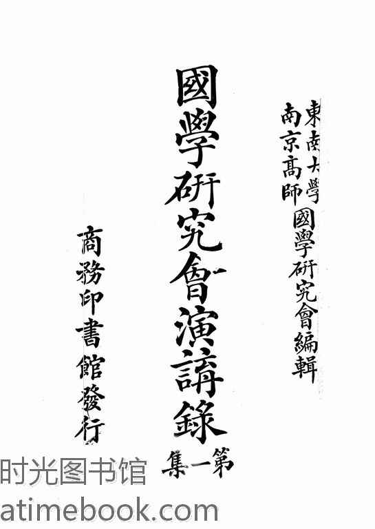 网盘路径:/时光图书馆珍藏系列/书籍文件/老图书/《国学研究会演讲录_第一集》电子版合集.db