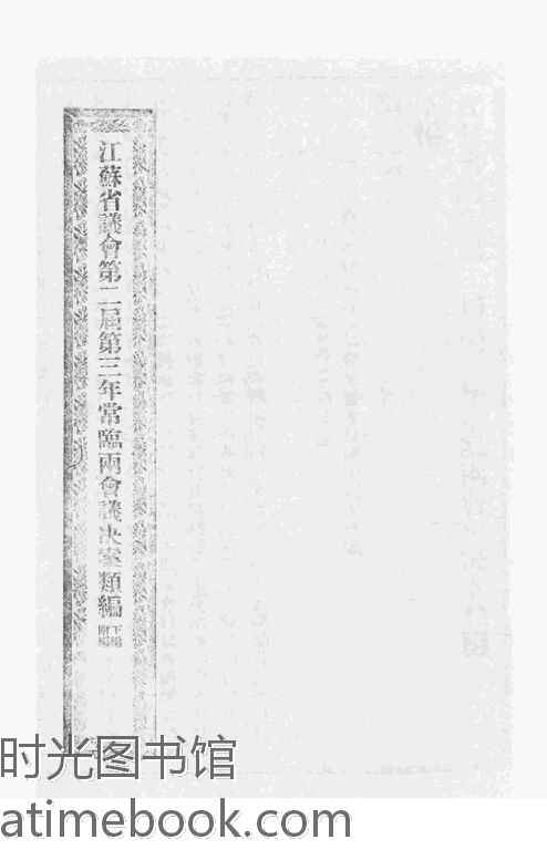 | 网盘路径:/时光图书馆珍藏系列/书籍文件/老图书/《江苏省议会第二届第三年常临两会议决案类编_下编_附编》电子版合集.db | ||